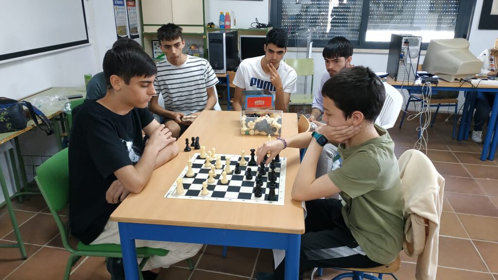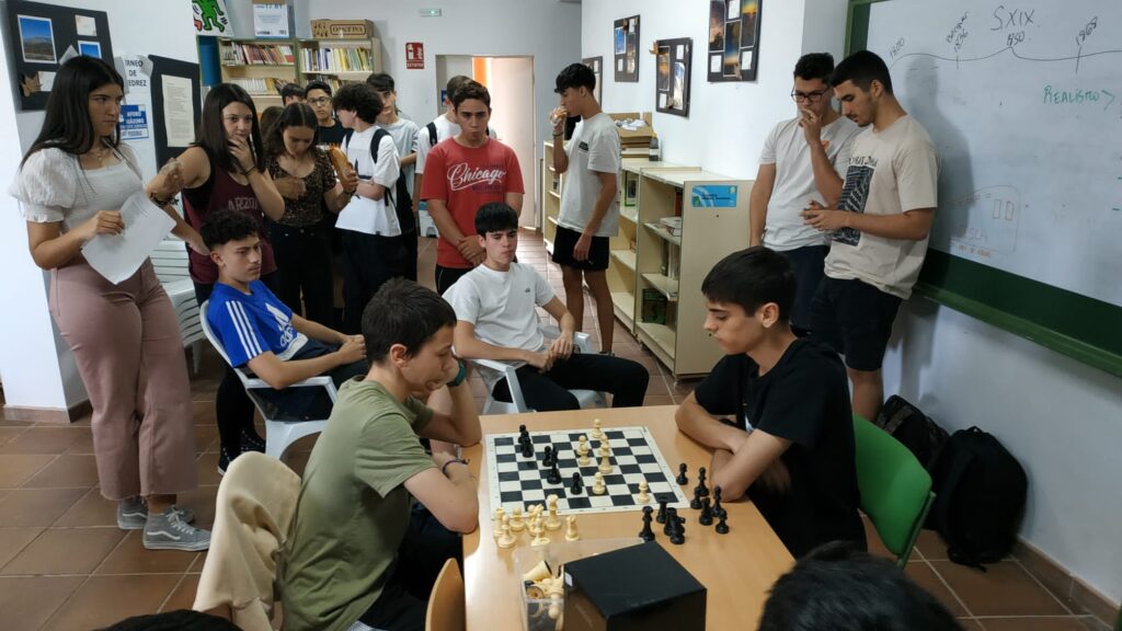 Llegamos ya a la fase final del Campeonato de ajedrez que se está desarrollando en el Instituto dentro del Programa Aula de Jaque. Una nueva edición de este programa, coordinado por nuestro compañero Juan Aguilera, que ya es un clásico en nuestro Centro y que cuenta con una alta participación de nuestro alumnado.