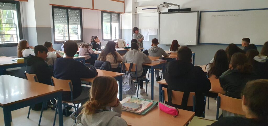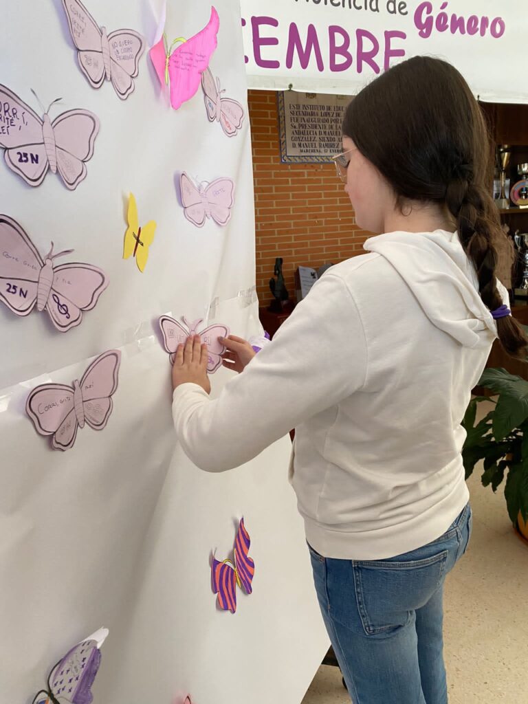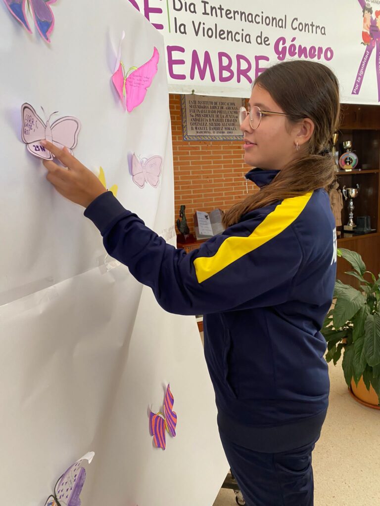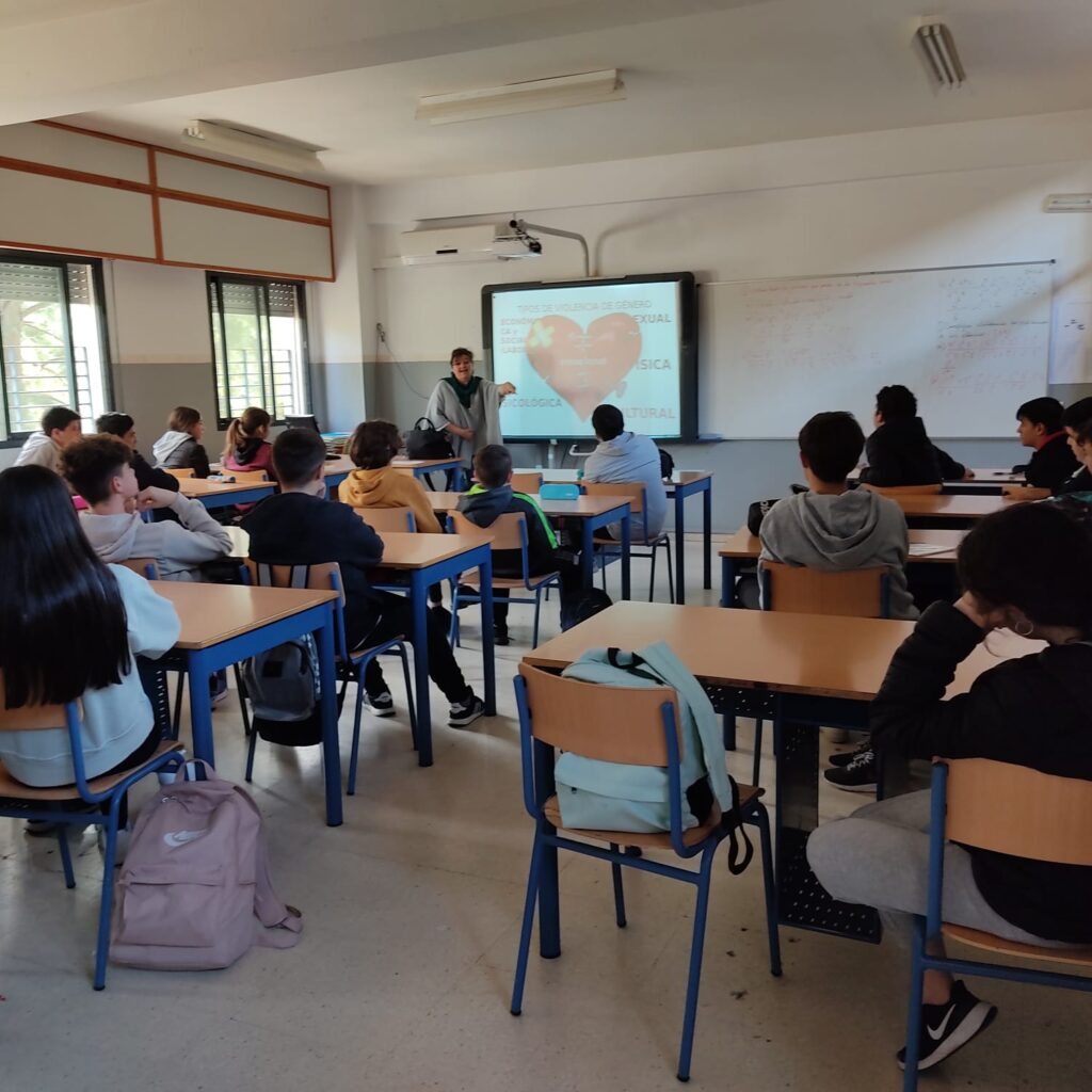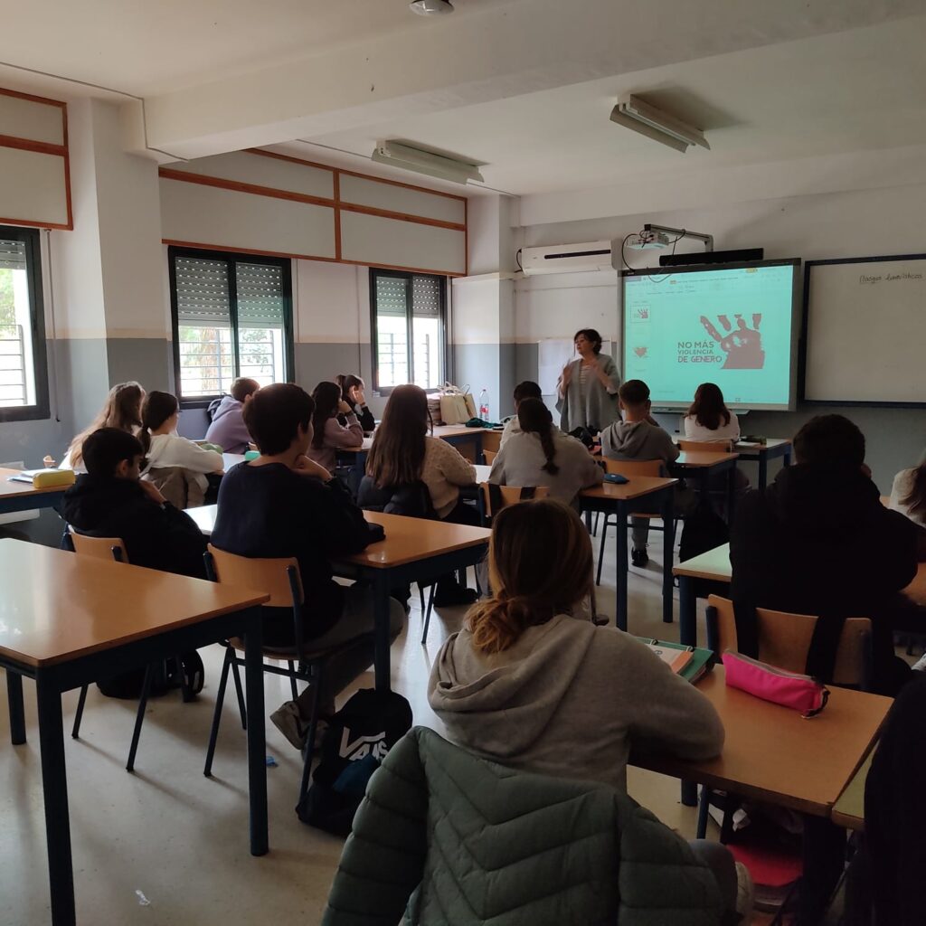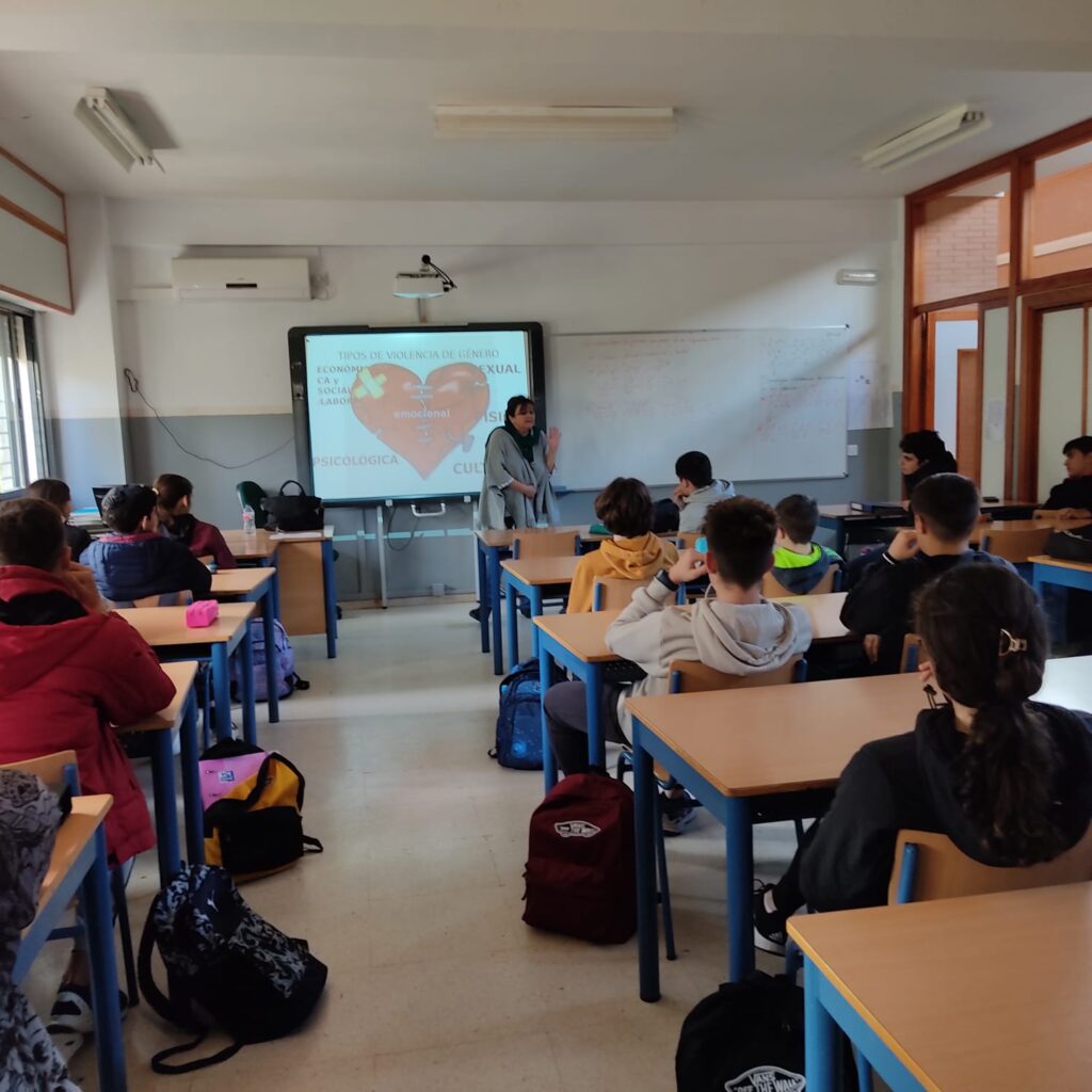 -Taller » El buen Trato» realizado el 23 de Noviembre, con motivo del 25N Día internacional para la Eliminación de la Violencia contra la Mujer, organizado por el Área de Igualdad del Ayuntamiento de Marchena, dirigido al alumnado de 3°de la ESO, impartido por Lola Pérez.