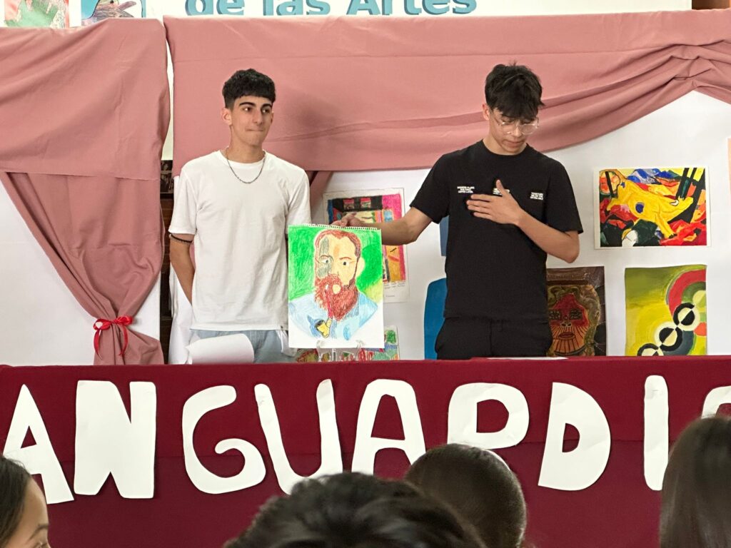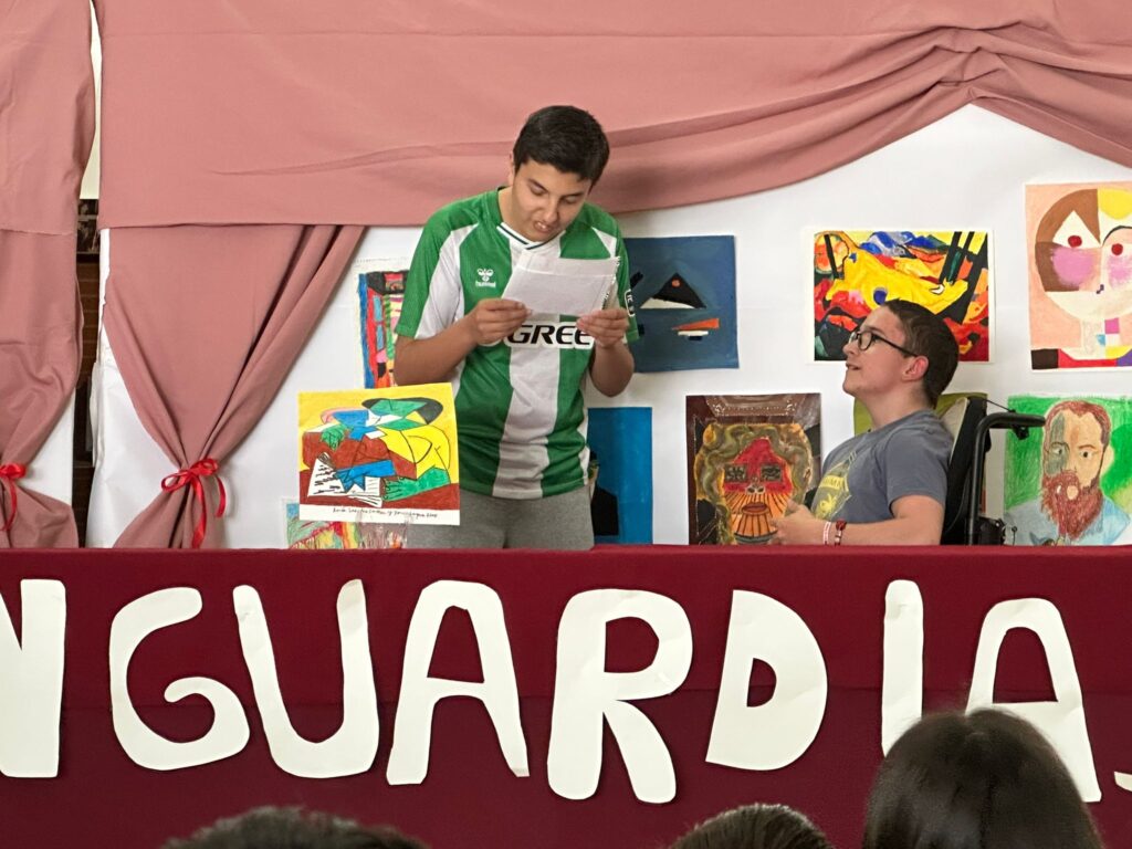 La Exposición de Obras Vanguardistas ha sido, sin duda, la gran protagonista de la mañana. El éxito de público ha sido rotundo; el Hall del instituto se ha llenado de alumnos y alumnas curiosos que han podido disfrutar de las reinterpretaciones de los movimientos que revolucionaron el arte a principios del siglo XX. El alumnado de 3º de ESO A ha realizado una labor impecable como guías de la exposición, explicando con solvencia y pasión las claves del cubismo, el futurismo o el surrealismo a sus compañeros de 2º de ESO.