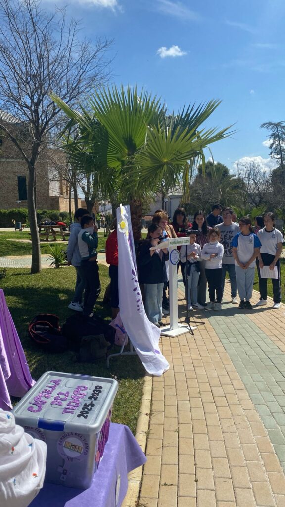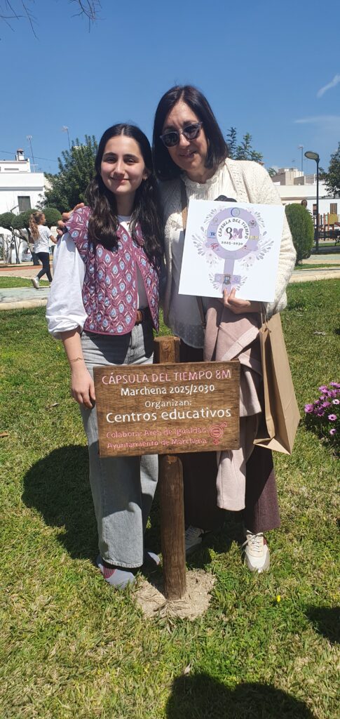 Acto que estaba previsto realizar el 7 de marzo, pero por las condiciones meteorológicas se ha llevado a cabo este jueves 27 en el Parque de Châteaudun para conmemorar el día de la mujer este año 2025, todos los centros educativos de Marchena se han unido, junto con el área de Igualdad del Ayuntamiento de Marchena para conmemorar este día tan importante y reconocer los logros de las mujeres a lo largo de la historia, la actividad consiste en crear una cápsula del tiempo colectiva, entre todos los centros educativos de Marchena que se abrirá en el futuro (dentro de 5 años) para ver cómo han evolucionado las ideas y avances en torno a la igualdad de género y mandarles “regalos” en modo de mensajes y retratos.