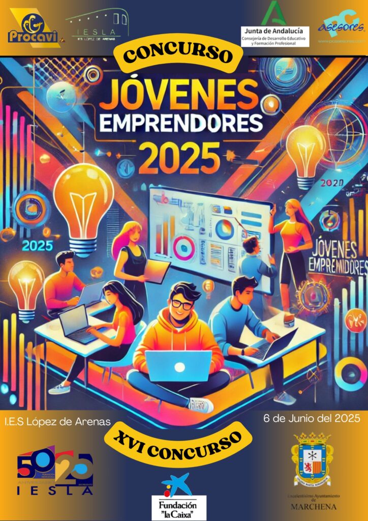 Del 8 de Enero al 21 de marzo del 2025, se ha procedido a la entrega de carteles para la XVI Edición de Jovemprende del IES López de Arenas de Marchena, resultando ganadores y ganadoras: