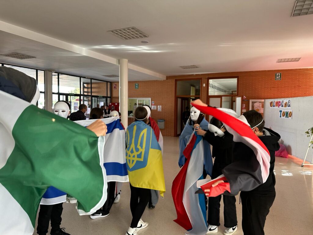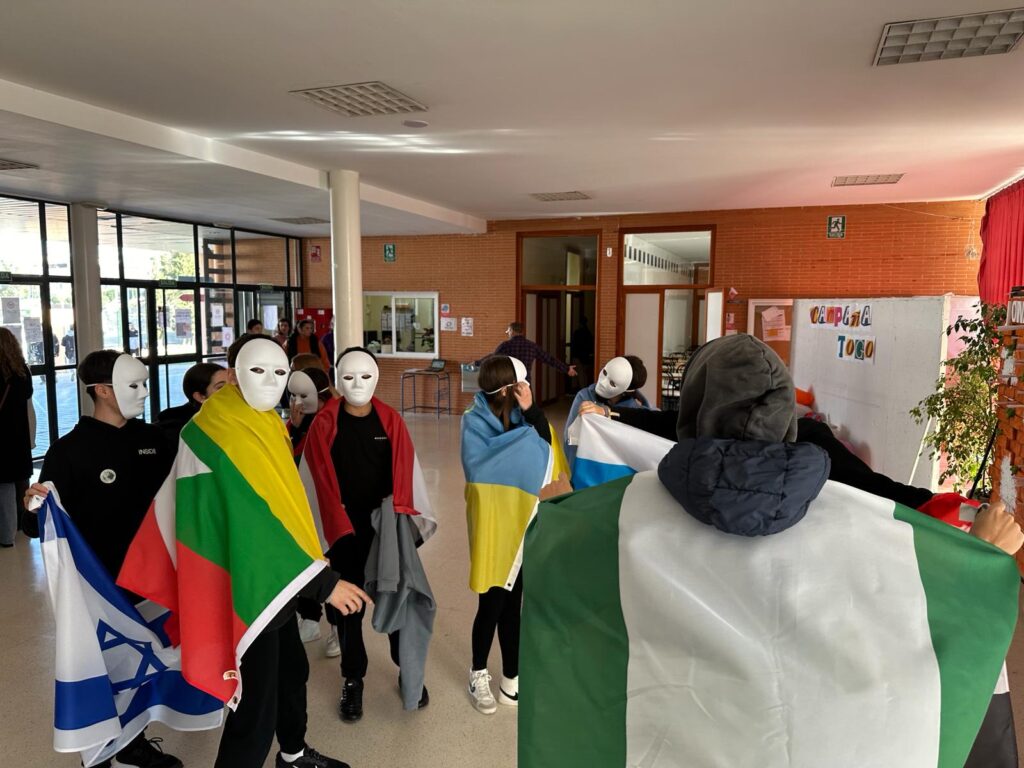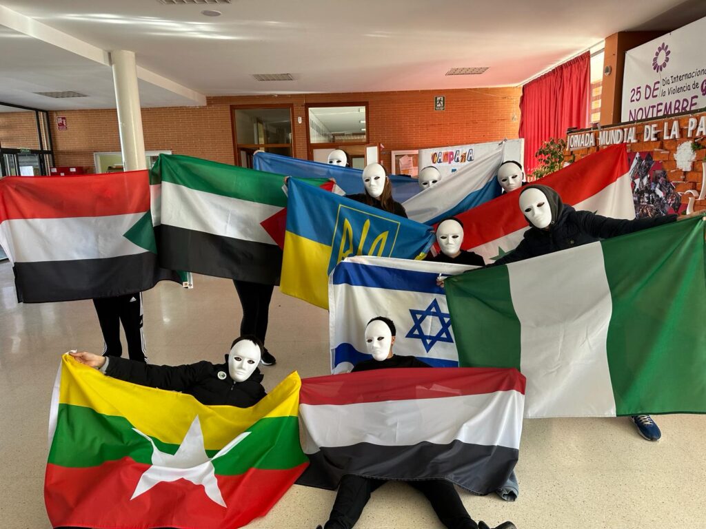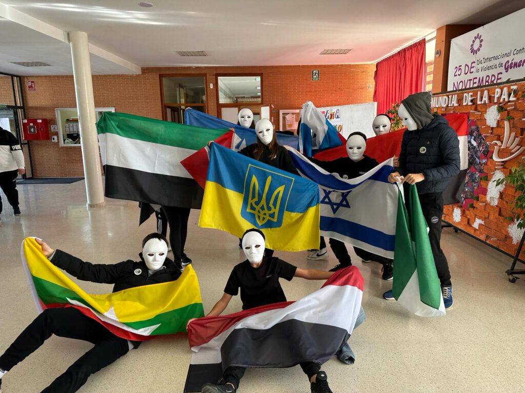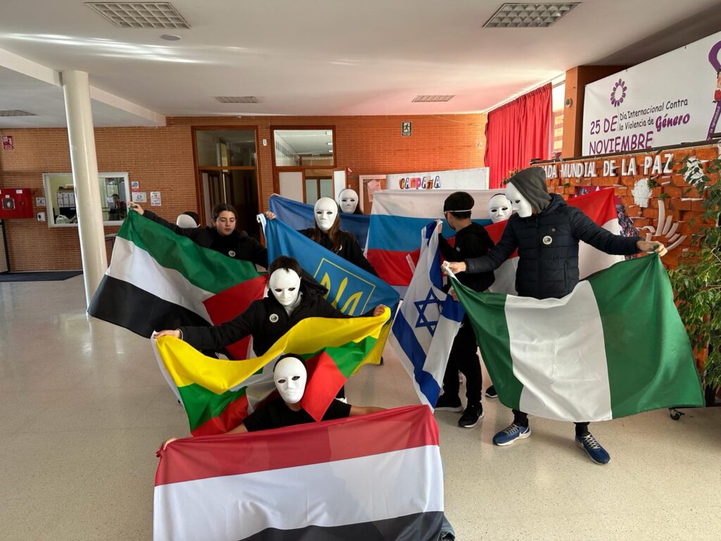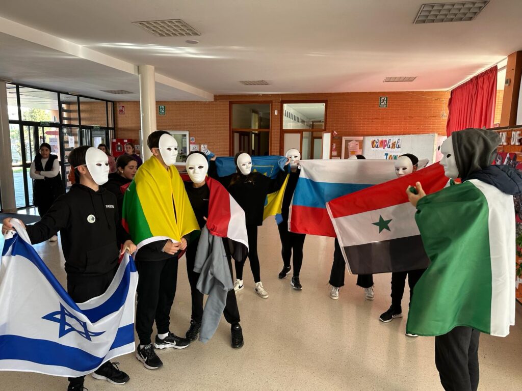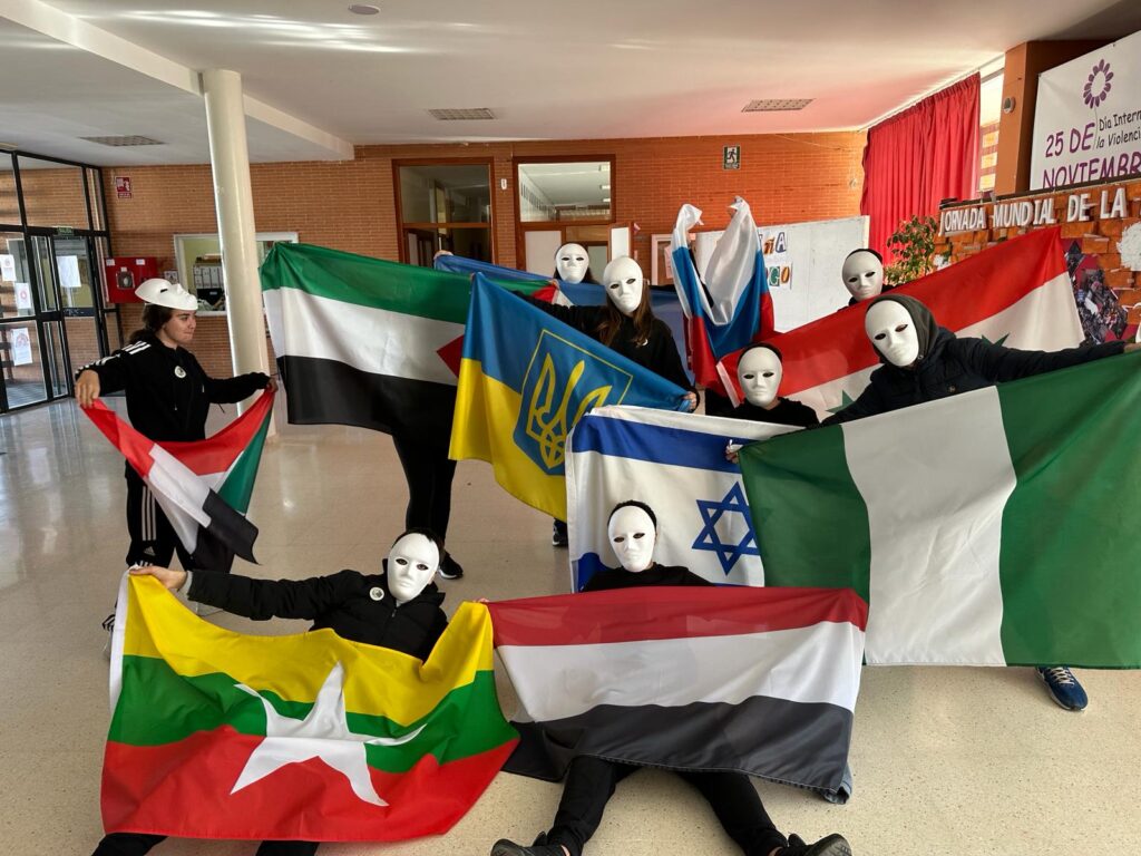 El alumnado de 3º ESO expuso para todo el centro los conflictos actuales mediante las banderas de los países implicados.