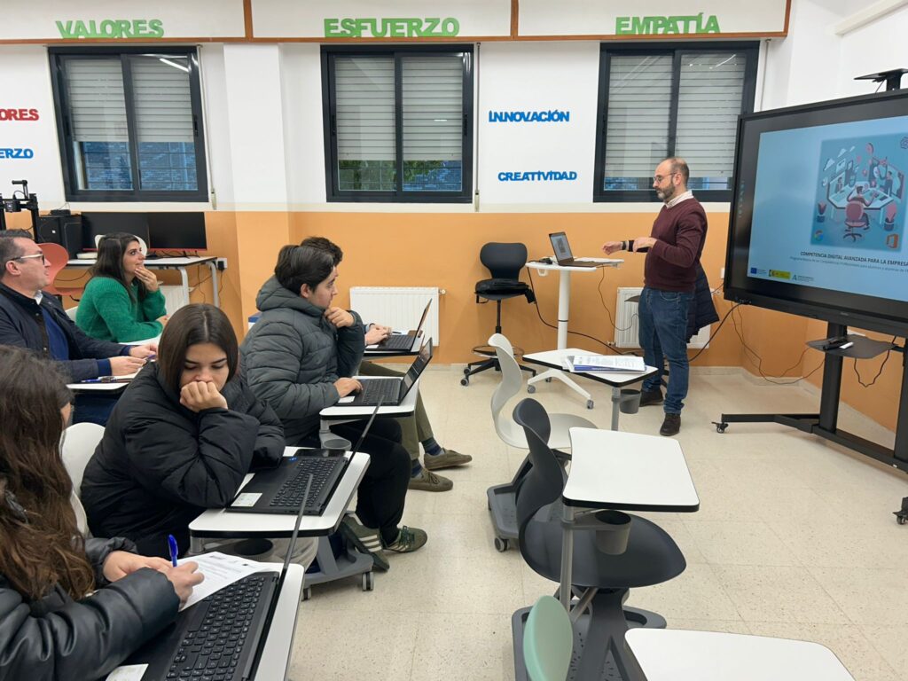 Finalizan los talleres de mejora de las competencias digitales de FP dual, con notable éxito gracias al alumnado, a los ponentes José A. Gracia y Jesús Alejandre, y a nuestras empresas participantes Madera Cilpe Noblemix, PC Asesores y Ayuntamiento de Marchena, a través del proyecto El Quinto paso de la FP en Marchena, aprobado por la Dirección General de FP de la Consejería de Desarrollo Educativo y Formación Profesional. Financiado por el Ministerio de Educación y Formación Profesional y cofinanciado con el Fondo social Europeo Plus.