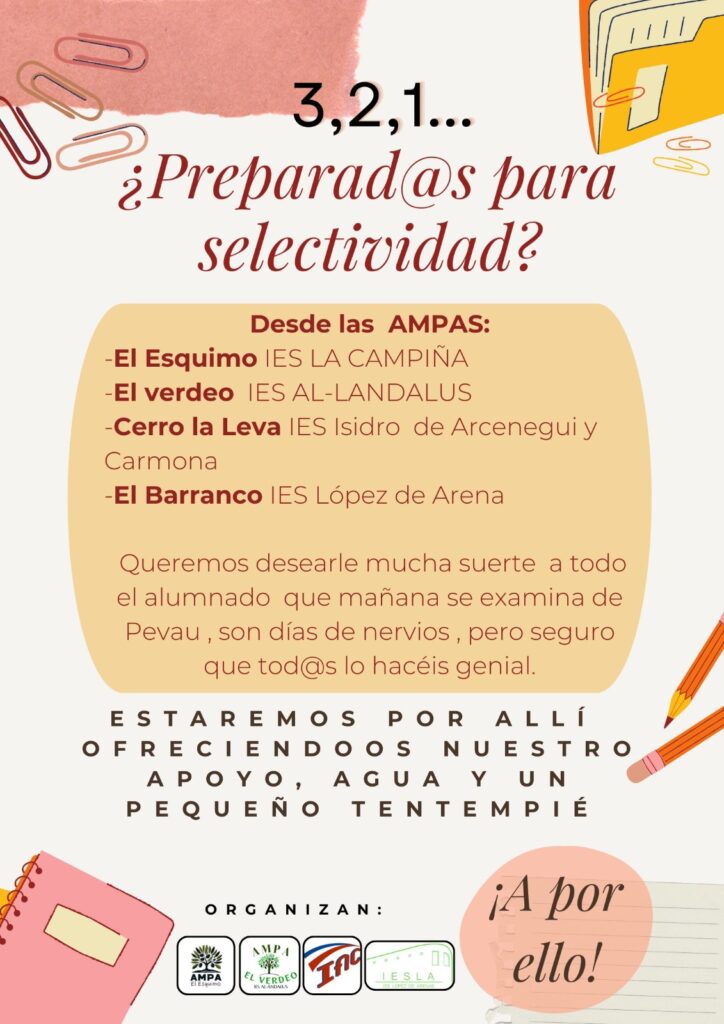 Iniciativa de las AMPAS para la PEVAU. ¡Suerte a todos y todas!