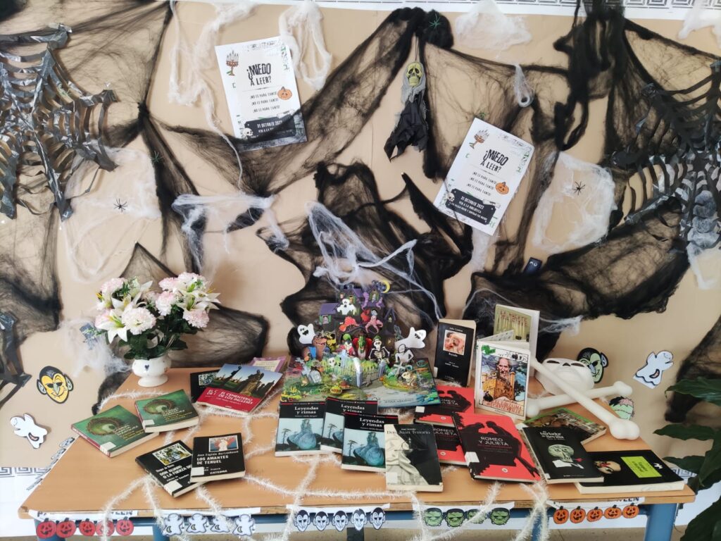 Se trata de fomentar la lectura, la escucha, el cuidado, a través de la literatura. En nuestro centro, se ha realizado el martes 25 de octubre, de manera experimental, para algunos cursos de 1º de la ESO, con voluntarios y voluntarias de 4º de la ESO y de 2º de la ESO, en distintos espacios del centro, que se convirtieron en zonas de salud muy peculiares.