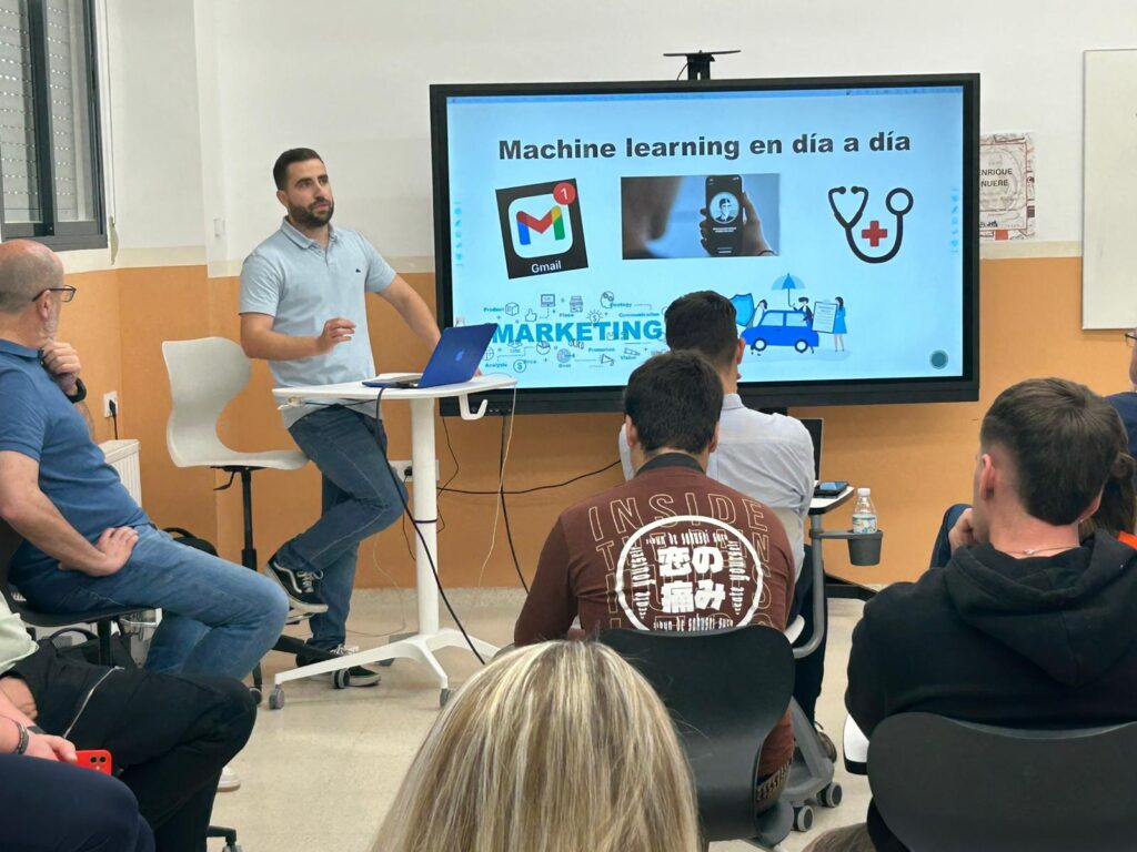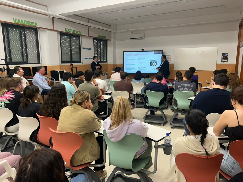 Cristian Cantizano y Alfonso Prieto han explicado a los alumnas y alumnas de los ciclos formativos temas sobre la ciberseguridad en las redes sociales con ejemplos.