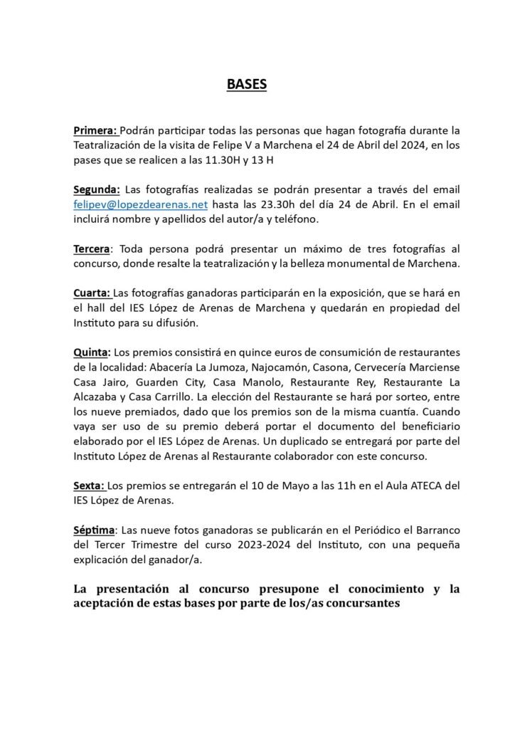 Se recuerdan las bases del Concurso de Fotografía sobre la teatralización de la visita de Felipe V a Marchena.