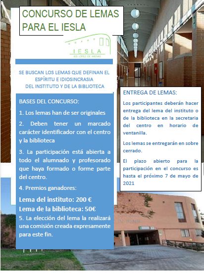 Está abierto el plazo de presentación para participar en el concurso de lemas para el instituto y la biblioteca.