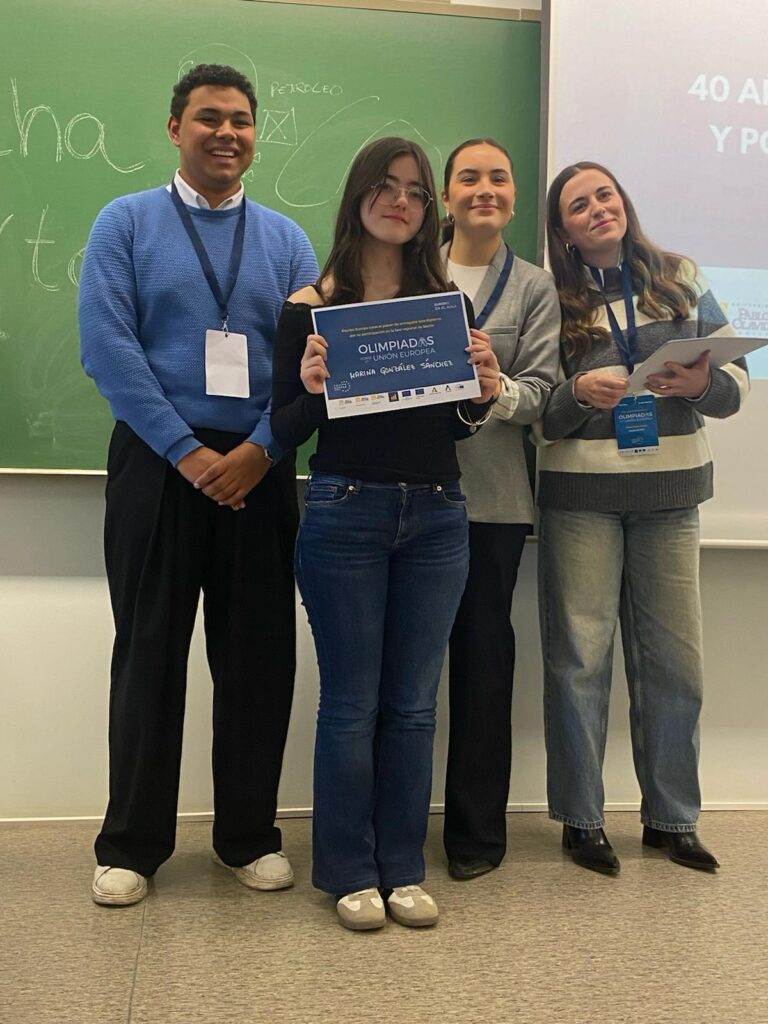 Un grupo de cinco alumnos de 1º de Bachillerato del IES López de Arenas (Marchena) ha demostrado su gran capacidad de análisis y debate en las recientes Olimpiadas sobre la Unión Europea, celebradas en la Universidad Pablo de Olavide (UPO). La jornada destacó por su alto nivel de exigencia, poniendo a prueba tanto los conocimientos teóricos como la agilidad mental de los participantes. Nuestros alumnos tuvieron que competir con otros alumnos de 6 centros educativos de Andalucía occidental.