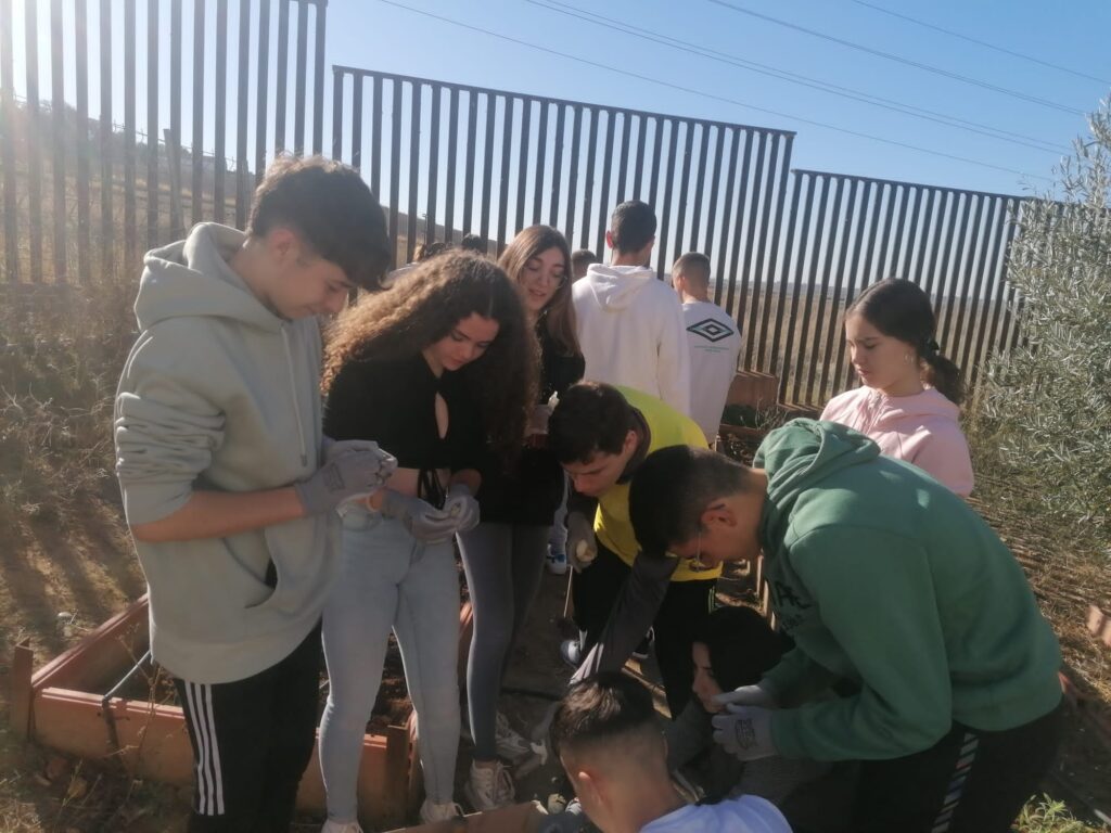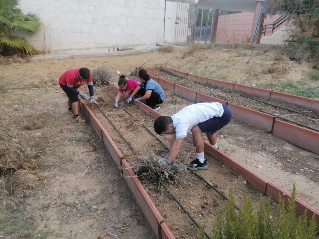 Los alumnos contaron con la ayuda de compañeros suyos de 3º de secundaria, que se acercaron al huerto a echarles una mano.