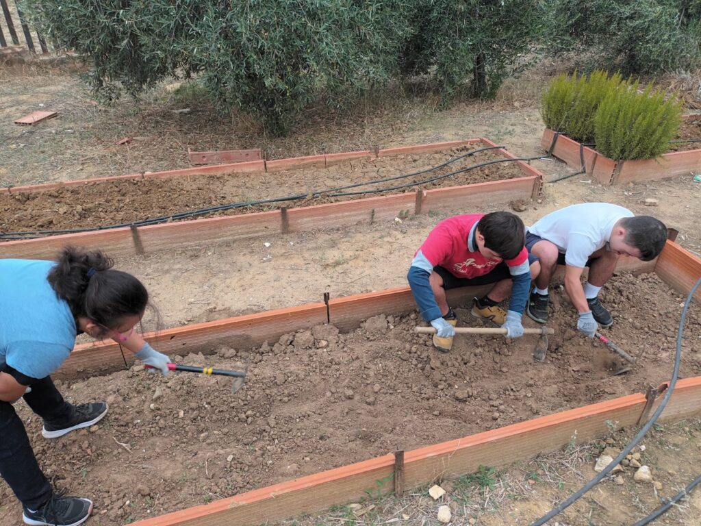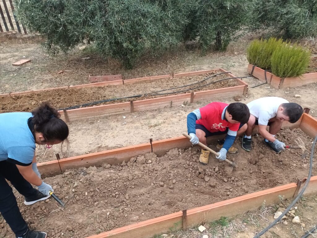 Los alumnos y alumnas de Educación Especial acompañados de su profesora Maria Labella han iniciado la plantación de invierno en el huerto. Han plantado habas, cebollas, ajos, rábanos, zanahorias, brócoli, coliflores, espinacas y plantas aromáticas. También lechugas de tres variedades diferentes.