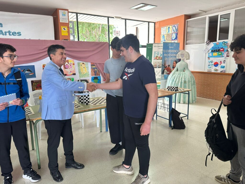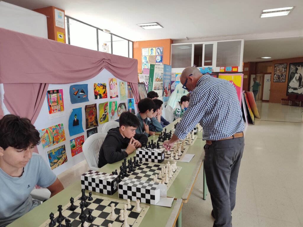 En primer lugar, el Hall ha acogido una Simultánea de Ajedrez. Esta actividad no ha sido casual: el ajedrez fue el deporte intelectual por excelencia de las vanguardias. Desde la obsesión de Marcel Duchamp por el tablero hasta las composiciones geométricas de los constructivistas, el ajedrez representa esa ruptura con lo antiguo y la búsqueda de nuevas estructuras lógicas, algo que nuestro alumnado ha plasmado en cada movimiento de piezas.