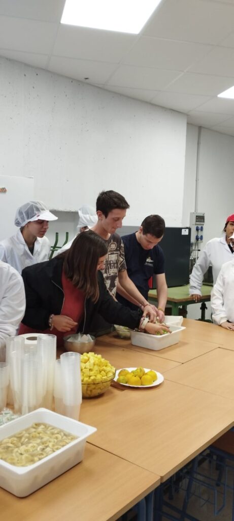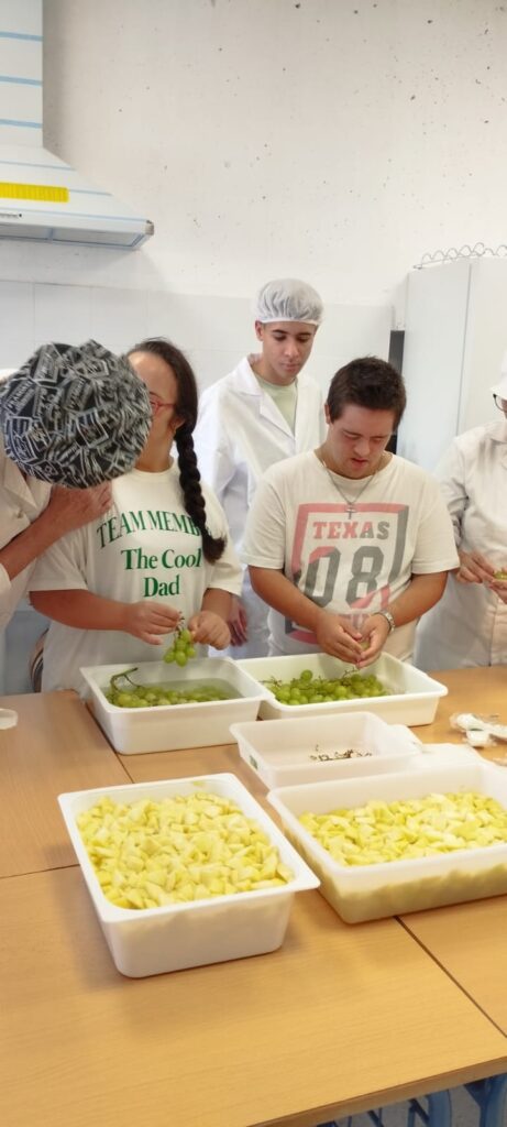 En el marco del Programa de Hábitos de Vida Saludable, el alumnado de Ciclo Formativo de Grado Superior en Procesos y Calidad Alimentaria, en colaboración con el Aula Específica, ha elaborado una macedonia de frutas, como símbolo de trabajo en equipo e inclusión.