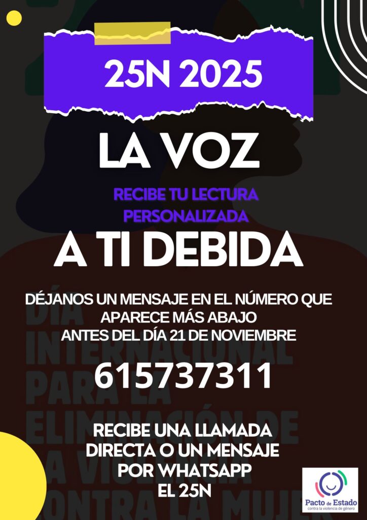 Si necesitas un momento de conexión, un soplo de ánimo o simplemente el calor de unas palabras elegidas con cariño, nuestro alumnado y voluntariado lector de La Voz a Ti Debida te ofrecerá una lectura personalizada. Podrás recibirla directamente en tu teléfono, como un mensaje de apoyo y solidaridad.