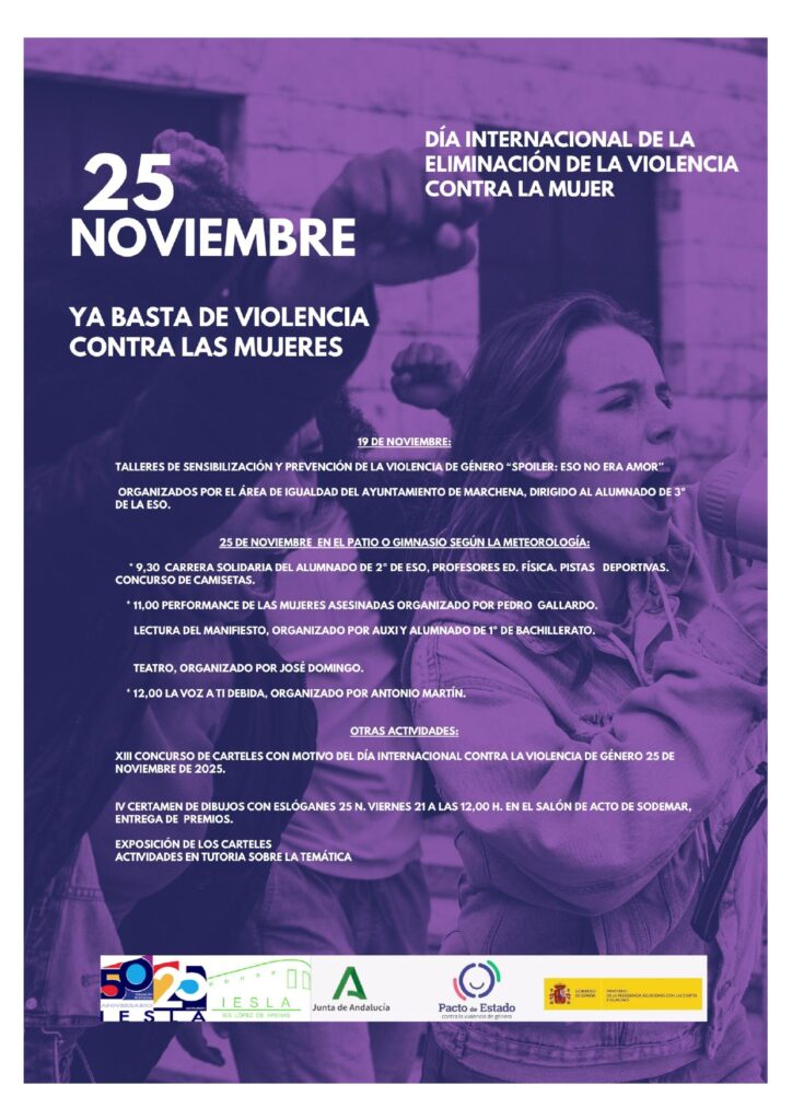 El IES López de Arenas ha desarrollado una intensa y completa programación de actividades con motivo del 25 de Noviembre: Día Internacional de la Eliminación de la Violencia contra la Mujer; reforzando el compromiso de toda la comunidad educativa con el «Pacto de Estado contra la Violencia de Género».